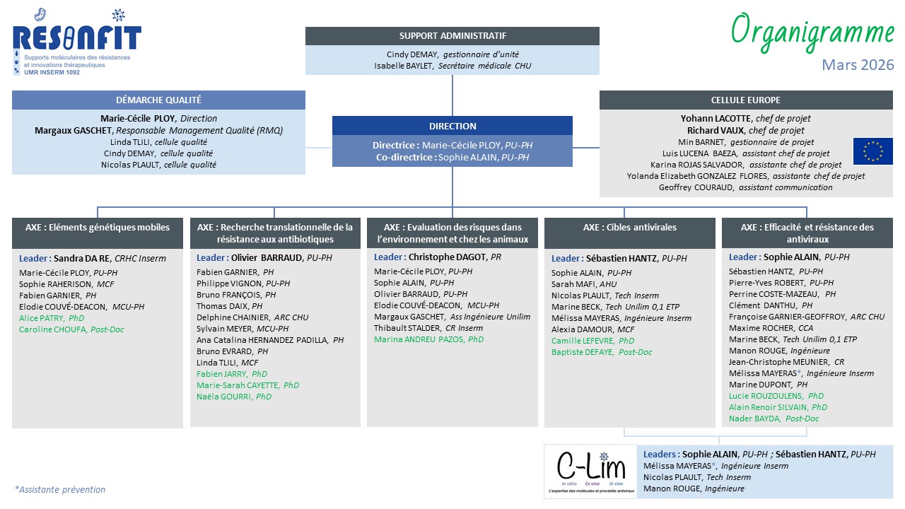 PU-PH - Axes : Recherche translationnelle de la résistance aux antibiotiques ; Evaluation des risques dans l’environnement et chez les animaux