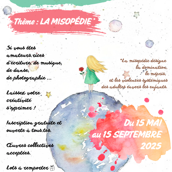 Dans le cadre du second colloque « Misopédie, la domination adulte dans les discours contemporains » organisé les 9 et 10 octobre 2025 par Cécile Kovacshazy, du laboratoire EHIC et suite au grand succès du précédent concours, on renouvelle l’expérience !