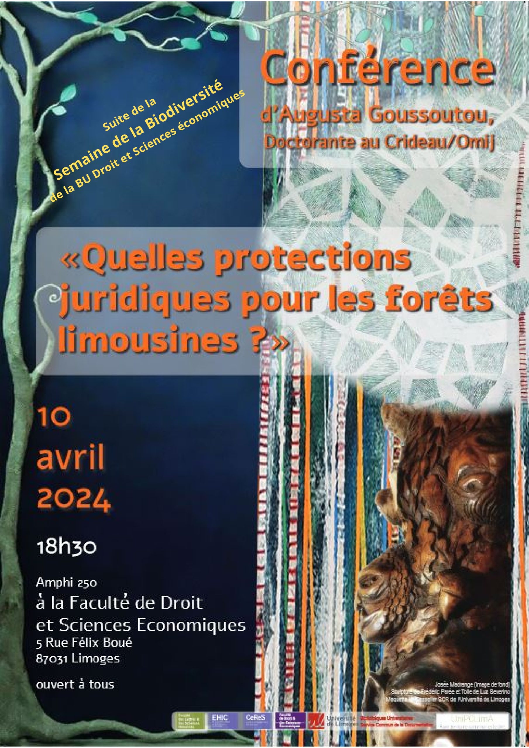 Dans le cadre du 41e Congrès de la SoFHIA qui se tiendra à Limoges du 5 au 8 juin 2024, le Service Commun de Documentation a le plaisir de convier Augusta Goussoutou, doctorante rattachée à l’OMIJ et au CRIDEAU, pour une conférence dans l’amphi 250 de la FDSE.