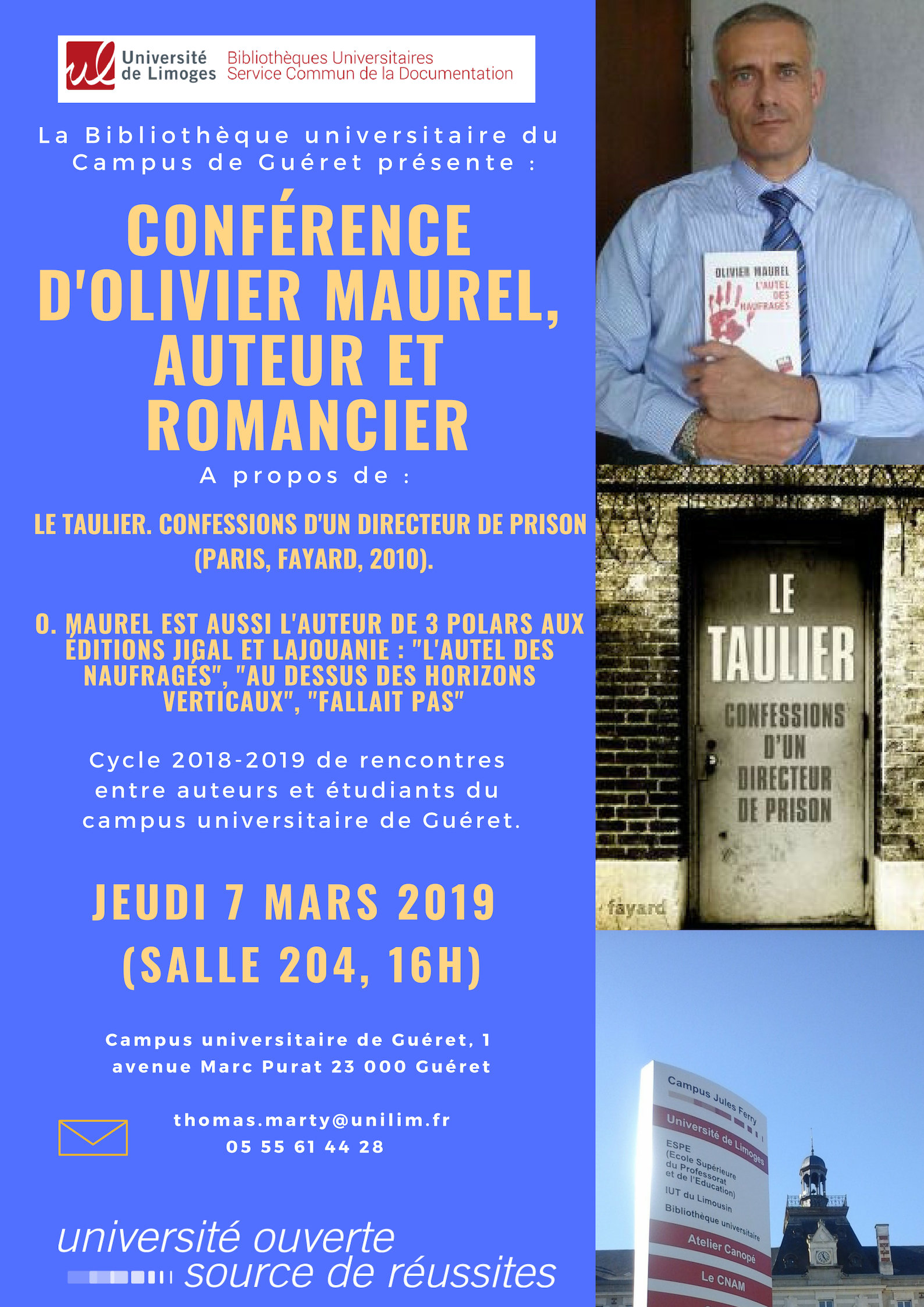 Catégories : Maurel Guéret 7 mars 2019 Maurel Guéret 7 mars 2019 39 C, rue Camille Guérin 87031 Limoges - France Tél. +33 (5) 05.55.43.57.00 *protected email* université ouverte source de réussites