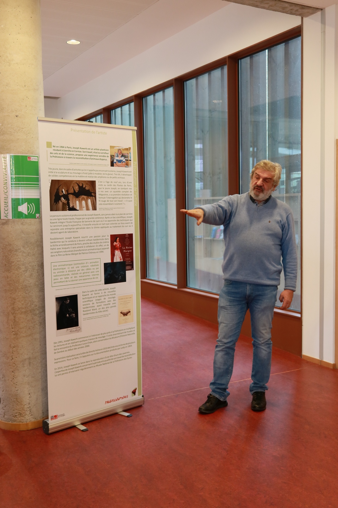 Au carrefour des arts et des sciences, Paléosculptures s’attache à contextualiser techniquement et scientifiquement l’impressionnant travail de reconstitution paléontologique de l’artiste. Les panneaux explicatifs présentés en support permettent de mieux appréhender les méthodes employées par Joseph Kawerk, mais également de comprendre l’importance que représente un solide corpus documentaire dans l’élaboration de son travail. Un éclairage paléozoologique proposé par le biologiste Daniel Petit est également présenté dans le cadre de cette exposition.