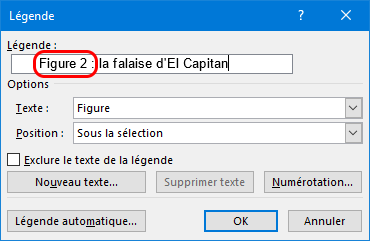 Pour terminer, cliquez sur OK pour insérer votre légende.