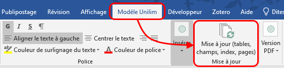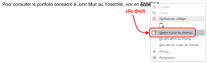 Pour mettre à jour un renvoi, faites un clic droit sur ce dernier et cliquez sur Mettre à jour les champs.