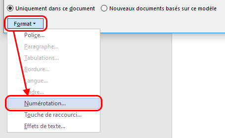 4. Dans la même fenêtre, ouvrez le menu Format et cliquez sur Numérotation… :