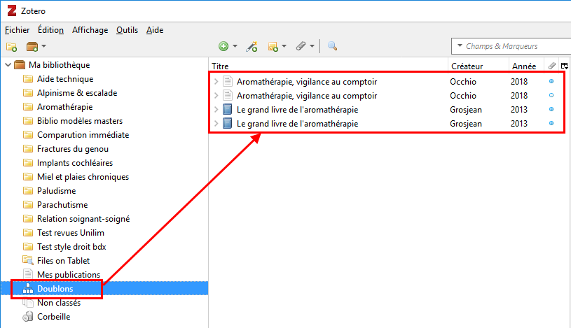 1 : visualisez les doublons dans votre bibliothèque Zotero