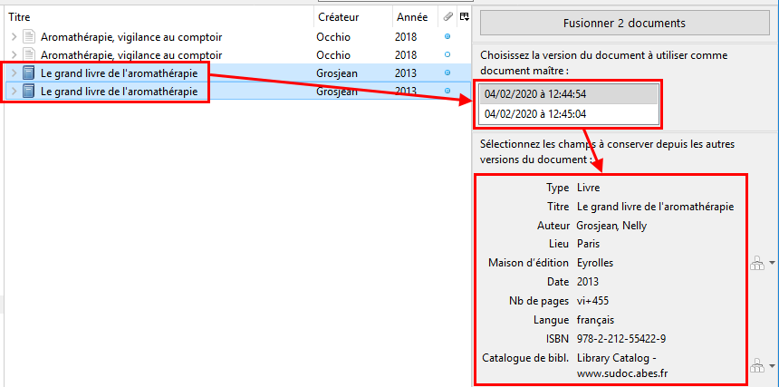3. Sélectionnez la version à conserver et fusionnez les doublons
