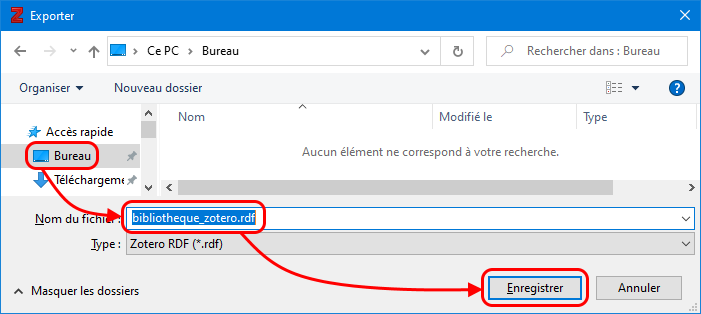 Votre bibliothèque est maintenant exportée dans un fichier de sauvegarde en format RDF, RIS ou BibTeX.
