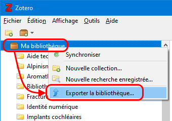 Dans certains cas particuliers, il se peut que vous ayez besoin d’exporter tout ou partie de votre bibliothèque Zotero dans un fichier externe.