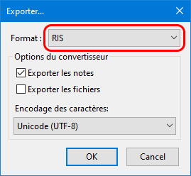 - RIS si vous souhaitez transférer votre bibliothèque vers un logiciel différent (Mendeley, EndNote, etc.)