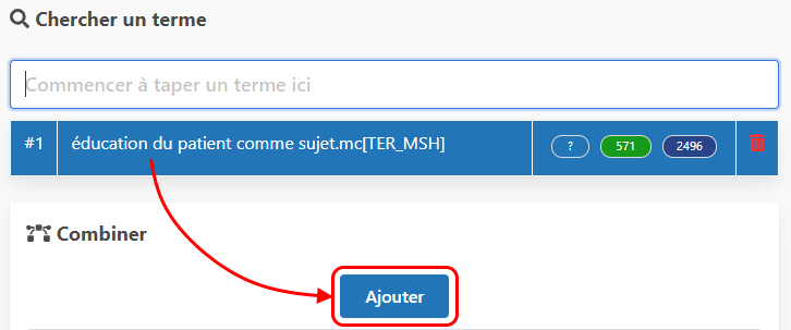 Vous voyez apparaître votre premier thème de recherche avec les différents opérateurs qui traduisent votre choix d’options.