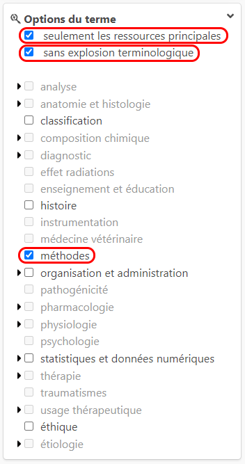 « Sans explosion terminologique » : pour que les documents ne traitent pas de sujets situés au-dessus ou au-dessous du vôtre dans l’arborescence MeSH.