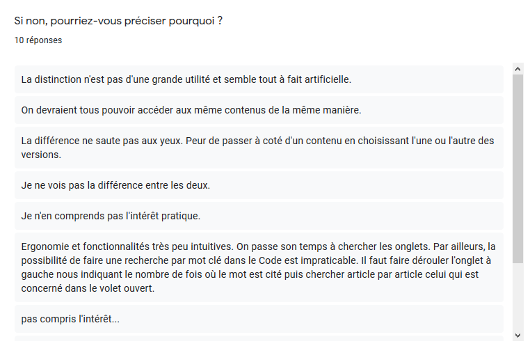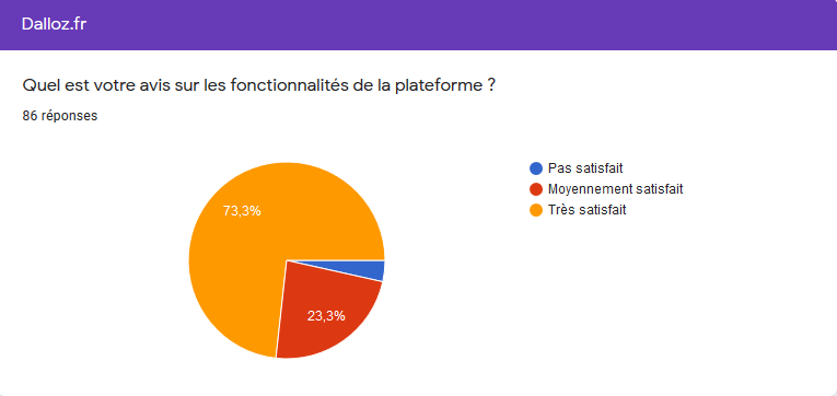 L’enquête a été menée durant une semaine, du 26 au 31 janvier. Vous avez été 87 à répondre aux questions portant sur Dalloz, 62 à celles portant sur LexisNexis. Nous vous en remercions chaleureusement. Nous tenions à partager les résultats de l’enquête avec vous.