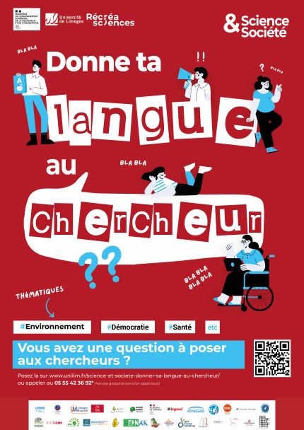Catégories : Actualité Affiche Affiche Bonjour à toutes et à tous ! L’affiche de l’appel à participation est prête, n’hésitez pas à la partager sur vos réseaux. *protected email* 05 55 42 36 92 Donne ta langue au chercheur