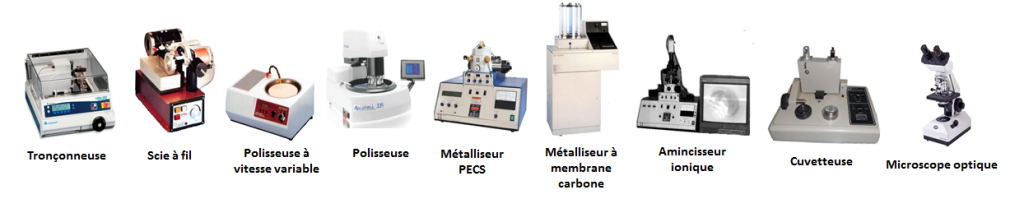 Pour les utilisateurs extérieurs, la préparation des échantillons est assurée par les ingénieurs du service commun de microscopie électronique. Les chercheurs des laboratoires peuvent bénéficier d’une formation leur permettant d’utiliser les matériels de préparation pour réaliser leur échantillons.