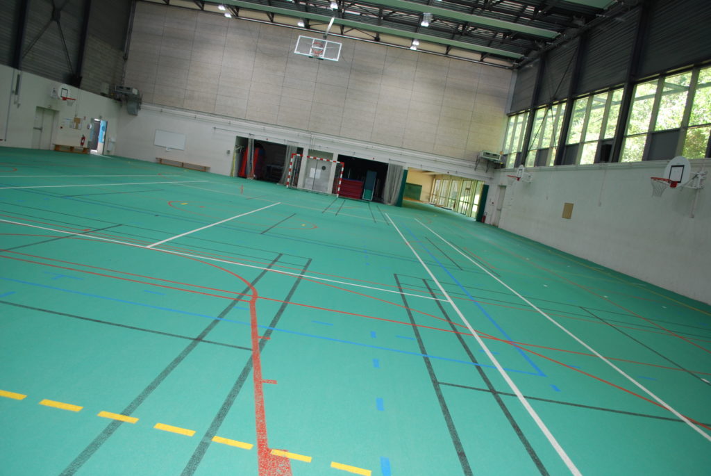 Sports collectifs, athlétisme indoor : 2 couloirs, espaces de sauts.