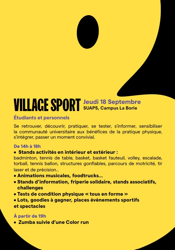 Pour cette nouvelle rentrée universitaire, nous vous invitons à notre événement de rentrée sportive, le Village SPORT