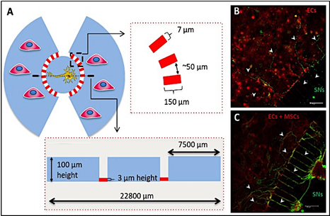 Sur la base des expertises, l’objectif de ce projet serait de développer des modèles de tri-cultures originaux permettant de mimer les processus d’innervation de ces deux tissus à l’aide de structures microfluidiques où les neurones sensoriels, isolés à partir de cellules souches pluripotentes induites humaines seraient co-cultivés en culture indirecte avec les cellules mésenchymateuses et des progéniteurs endothéliaux humain. L’ostéogénèse, la différenciation fibroblastique et la fonction endothéliale seront analysées ainsi que la nature des neurotransmetteurs impliqués dans ce dialogue. A moyen terme, et compte tenu de l’expertise des laboratoires impliqués, ces données cellulaires et moléculaires pourront être utilisées pour développer de nouvelles stratégies thérapeutiques en ingénierie tissulaire.